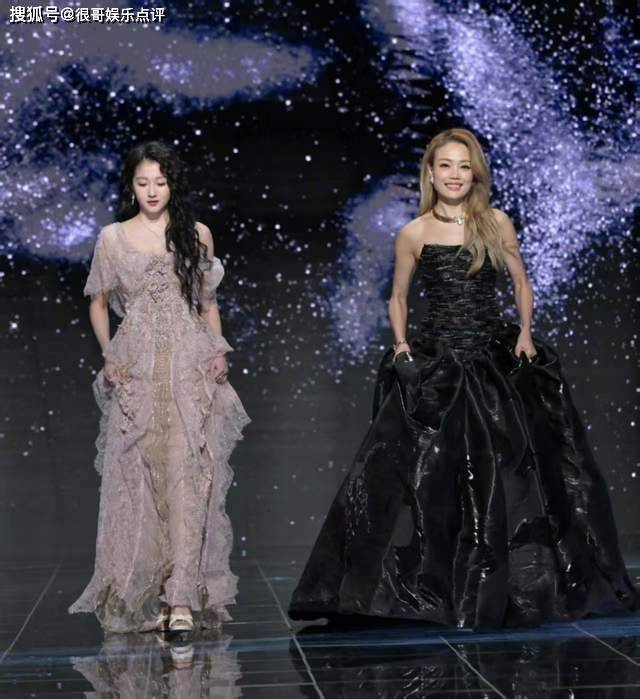 礼裙设计兼具梦幻感与高级感,柔粉底色缀以精致的碎钻刺绣,灯光下流转着细腻的光泽,行走间裙摆摇曳,宛如从童话中走出的公主;高腰剪裁最大化凸显她的长腿优势,垂坠的薄纱裙摆舒展身形,彻底摆脱了过往“显壮”的争议,单侧袖装的设计则让肩颈线条更显流畅。